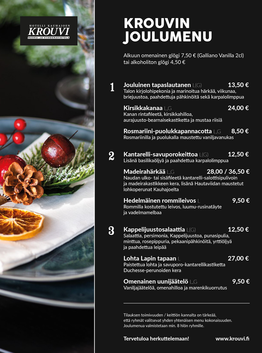 Varaa ryhmällesi pikkujouluruokailu ajoissa!